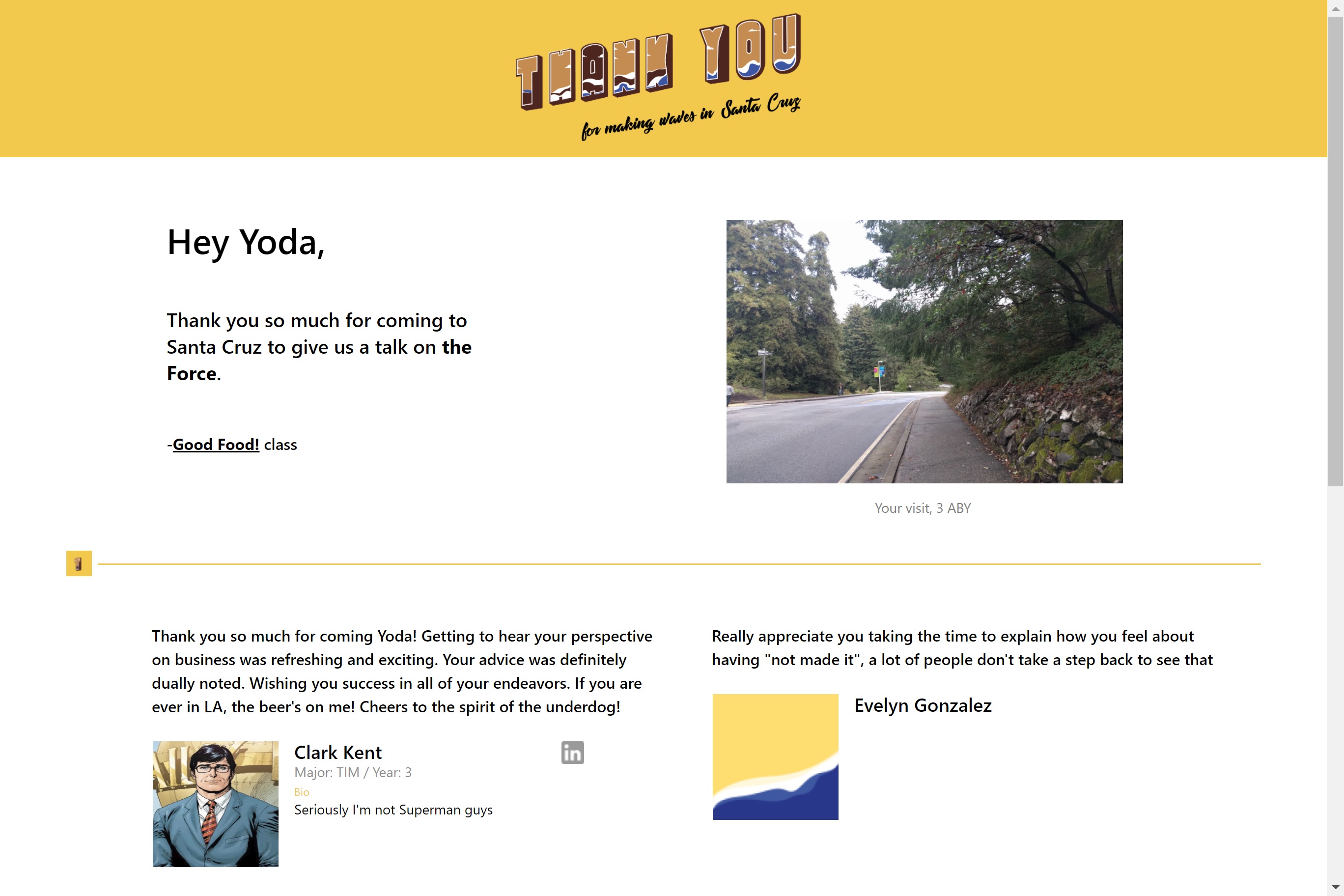 A website that allows students to thank their guest speakers