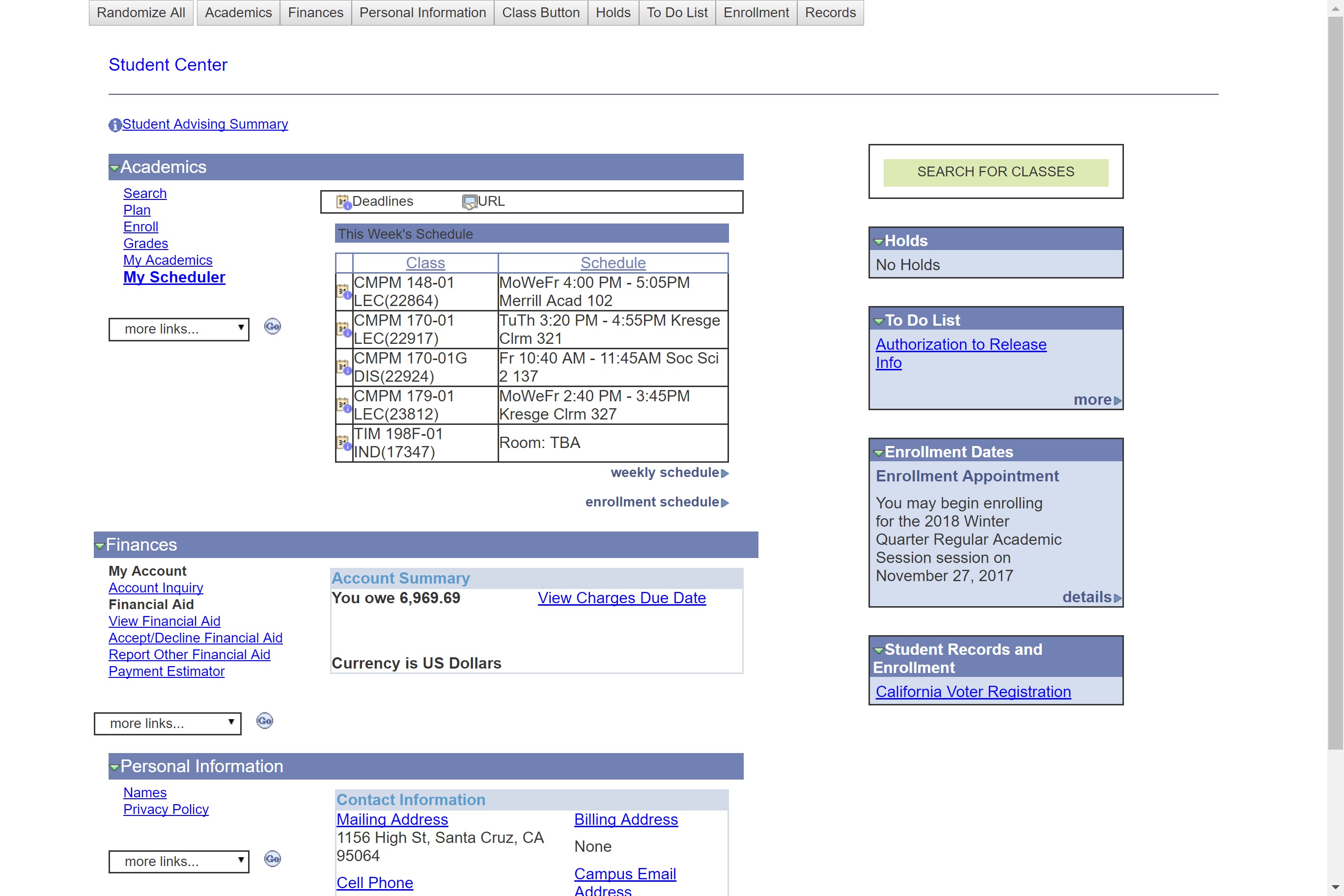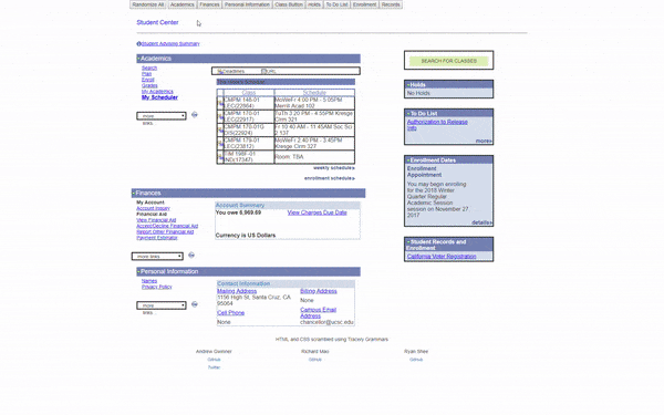 The replica of the myUCSC webpage